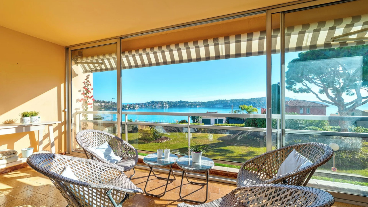 A42166ATB06 - VILLEFRANCHE-SUR-MER: 3-room apartment with panoramic sea view and swimming pool. This bright 3-room apartment of approximately 75 m² with breathtaking views of the Mediterranean and the Saint-Jean-Cap-Ferrat peninsula is located in a sought-after residence with swimming pool and caretaker, a few minutes' walk from the center of Villefranche-sur-Mer, the beaches and public transport.