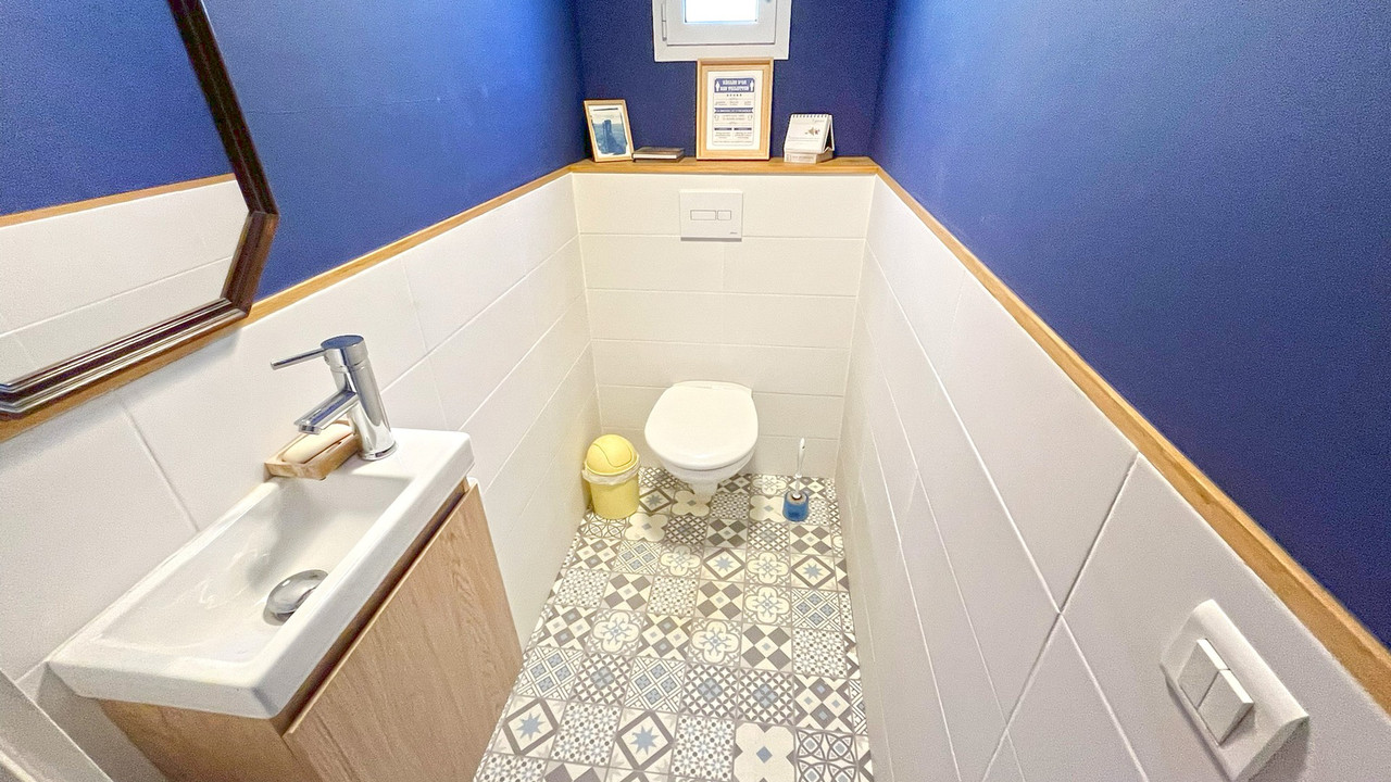 5-room villa, 122m² on a 490m² plot. 4 beds, 1 bathroom, 2 toilets. Large cellar & usable space unde