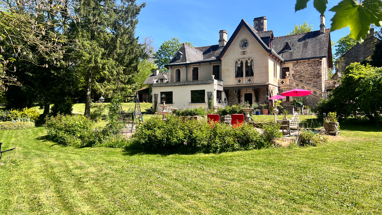 A44195VIC14 - A very rare opportunity to acquire this Gothic château in the rolling countryside of Clécy, in the highly sought-after area of Swiss Normandy. Formerly operated as a hotel, the property offers seven bedrooms, each with its own en suite, as well as an additional outbuilding that could provide further independent accommodation separate from the château. Set within mature gardens rich in established trees and shrubs, the property presents exceptional potential—whether for a bed and breakfast venture, the hosting of events and weddings, or as a spacious family home, a multi-generational residence, or simply a welcoming retreat with ample space for family and friends.