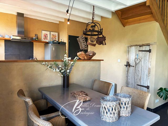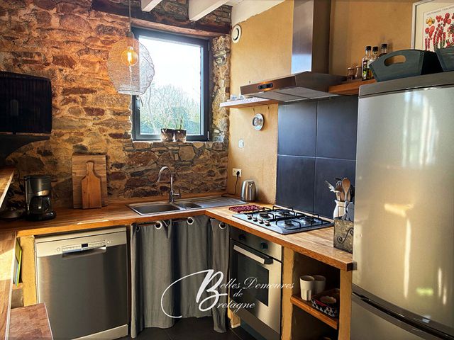 Une seconde partie, actuellement exploitée en gîte, se compose, au rez-de-chaussée, d'un séjour / salon avec cuisine équipée, d'un dégagement desservant une salle d'eau ainsi qu'un WC.