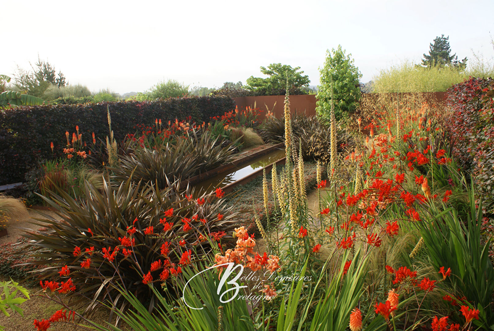 Le jardin foisonnant, structuré en une vingtaine d'ambiances paysagères sur près d'un hectare, est agrémenté d'un plan d'eau propice à la détente.