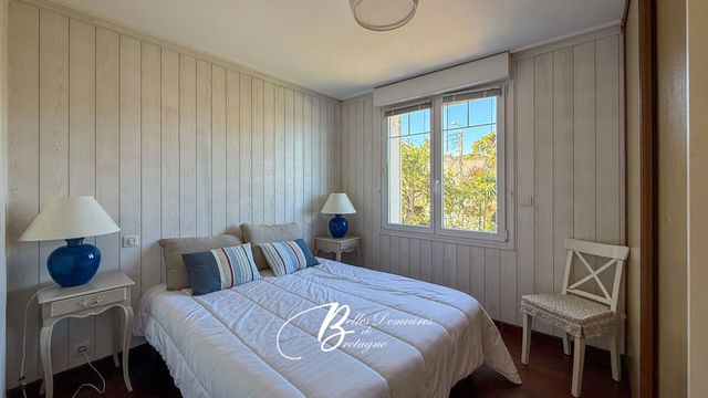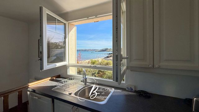 Au bord de la plage, à proximité du GR 34, commerces, cafés et restaurants à 2 mn à pied.