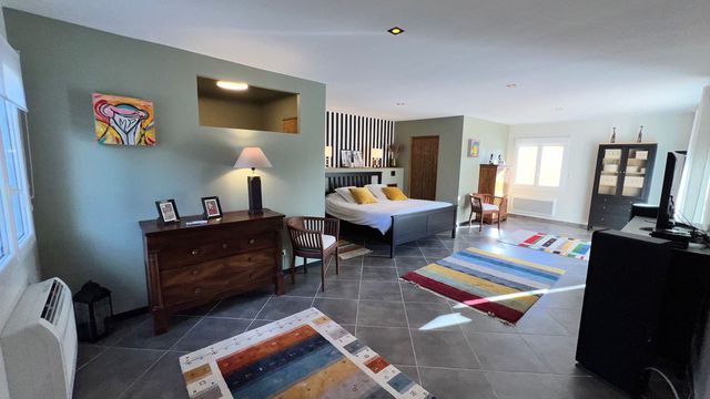 pleasant shaded terrace to the South, 1 large master bedroom, with private
