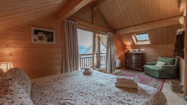 The chalet sits on a large plot of over 1100 m, and comes with a large flat lawned garden that takes the sun all day. The chalet has a good sized garage, and is essentially composed of two parts which are interconnected. This practical aspect of the chalet's configuration allows for larger groups when necessary, or, as is often used, a space for the younger end of the family to have separately. The 2 sides of the chalet are communicated via a small office.