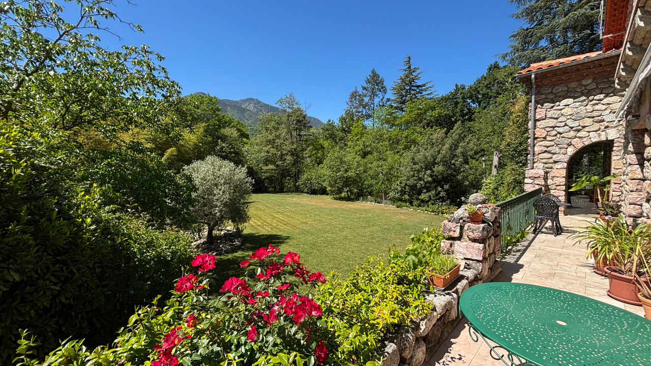 Discreetly nestled in a peaceful setting on the outskirts of a picturesque Catalan village, this elegant country residence—built by a renowned French aviator after the Second World War—offers a rare combination of heritage, generous proportions, and lifestyle appeal. Surrounded by sweeping mountain views and set within a mature garden, the property represents a unique opportunity for those seeking sophisticated rural living, with strong potential for guest accommodation or multi-generational use.