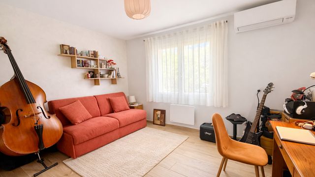 The apartment includes a fully equipped 12 m² kitchen, two bedrooms and modern comforts such as reversible air conditioning, a jacuzzi (value €11,000) and an electric vehicle charging station. The property also benefits from generous parking space for 4 to 5 cars, a rare advantage in this area.
