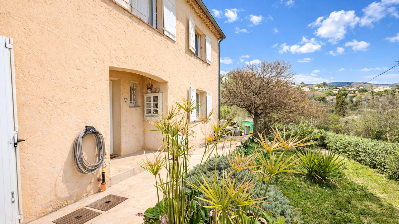 A43385SST06 - Located in the charming village of Cabris, this beautifully presented 91 m² garden-level apartment, in perfect condition, is part of an elegant house divided into only two residences. It offers a peaceful, bright and highly desirable lifestyle.