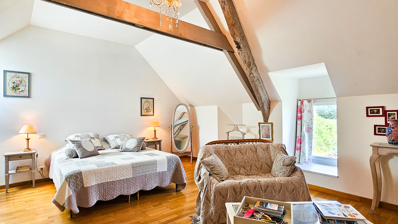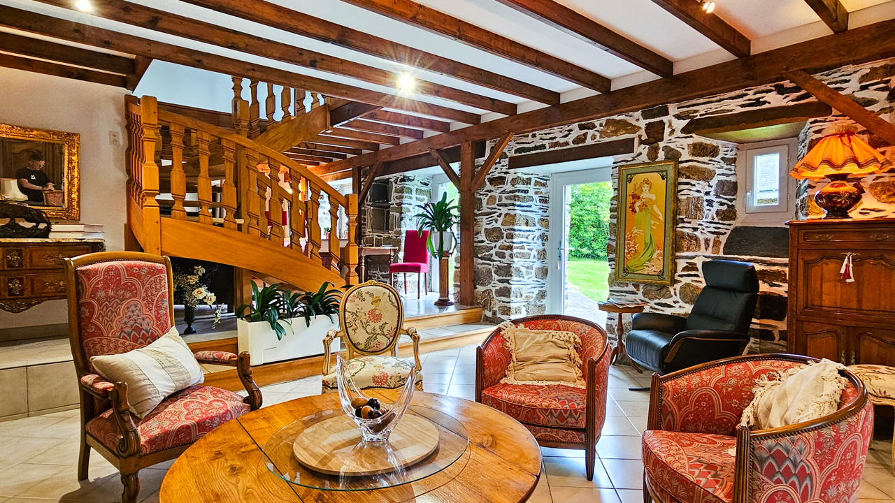 A thoughtfully renovated and beautifully presented four bedroom stone, longère, complete with separate spa, additional independent one bedroom house, beautiful landscaped gardens with far reaching views bordered by a stream. Also included is a large private woodland. All this near the famous Lac de Guerlédan in the heart of Brittany.