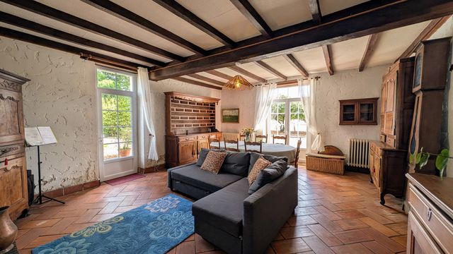 A39007ELM16 - Nestled in the southern Charente region, this charming property offers an idyllic setting with no neighbors in the heart of the countryside, yet remains accessible to all amenities. 10 minutes from Barbezieux, 35 minutes from Angoulême, and 1 hour from Bordeaux.