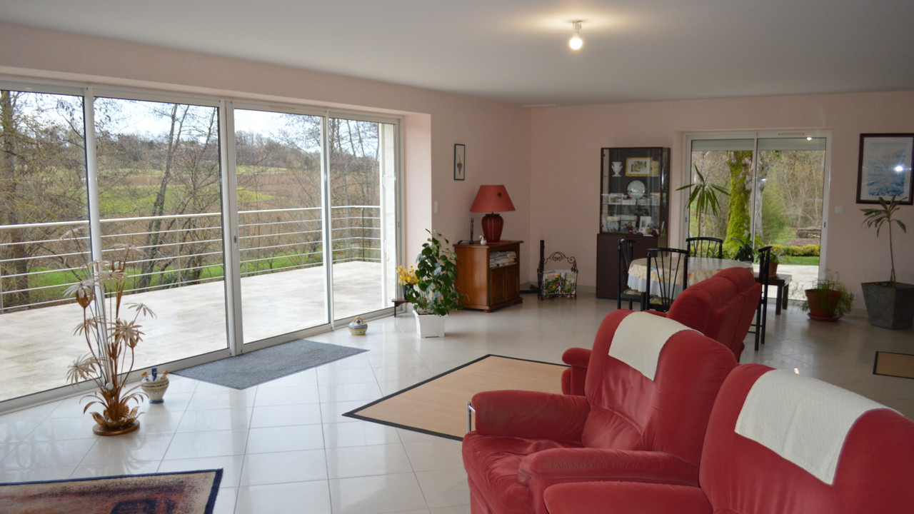 On the banks of a river, in an enchanting bucolic setting, discover this fully renovated stone mill. This rare property offers a large, bright living room and a kitchen-diner opening onto a terrace with stunning views. It has four bedrooms, including a ground-floor suite, and a wellness area with a jacuzzi.