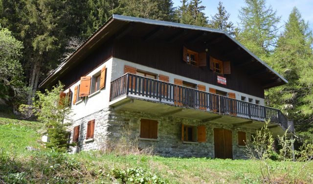 A42500DMD73 - Located at an altitude of 1,450 meters and built on a 5,300 m² plot, 600 meters from the village of “Le Bois,” this chalet offers approximately 470 m² of floor space spread over three levels A thoughtful renovation with the potential to create a 10-bedroom chalet with 10 bathrooms, a large living area with fireplace, a separate kitchen, and a wellness area will turn this diamond in the rough into a beautiful mountain retreat