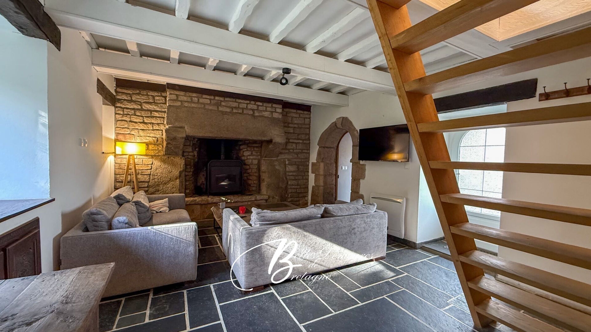 Deze woning, gebouwd met natuursteen onder leisteen van de Monts d'Arrée, ligt op het zuiden en heeft toegang tot een prachtige tuin van 3500 m² met een boomgaard, een moestuin en diverse bijgebouwen. Bij binnenkomst verwelkomt de begane grond u met een gezellige woonkamer met een grote open haard, een ingerichte keuken, een badkamer met inloopdouche, een apart toilet en een grote kamer die, afhankelijk van uw behoeften, als slaapkamer of eetkamer kan worden gebruikt.