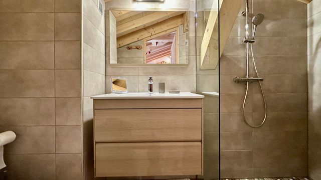 A39654SM73 - This 4-bedroom chalet of 146 m² total,near Le Praz, Courchevel, has been fully rebuilt on one side while retaining its original charm on the other.