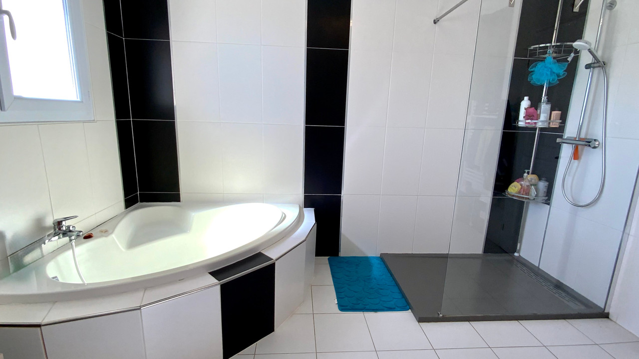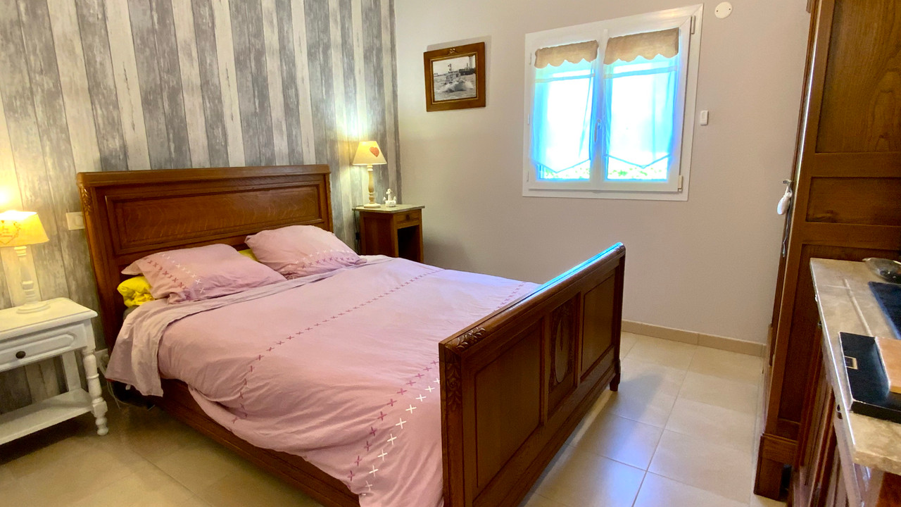 The light-filled 94 m² living room flows onto covered terraces for year-round enjoyment. Five bedrooms are spread over two levels, with the option of additional accommodation in the adjoining garage/annex.