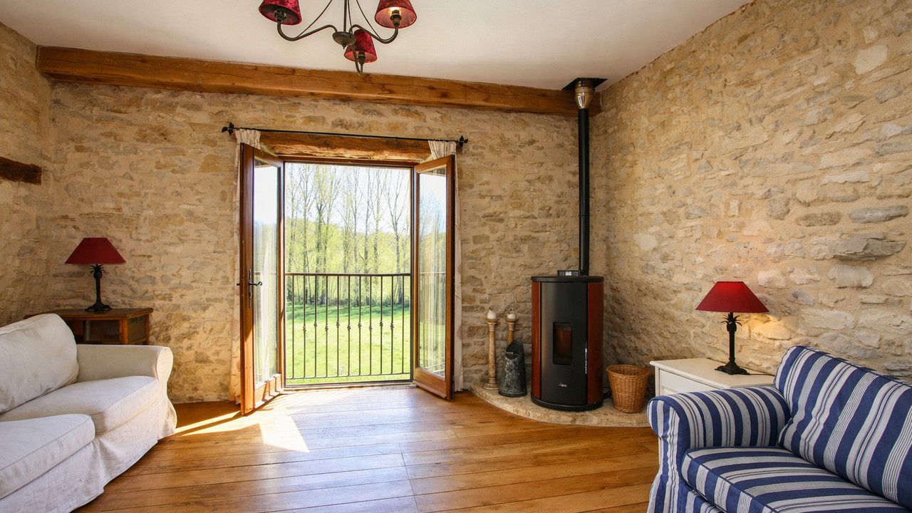 High-quality renovation combining period charm (exposed stone walls and beams) with modern comfort. Central heating system (new boiler installed in 2025).