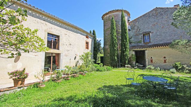 A36760NE11 - Amongst the gentle hills of the Malpère with vineyards, woods and the Pyrenees dominating the horizon you will find this large domaine, full of possibilities. The property covers over 83 hectares of fields, and woods with a large vegetable garden, a grove of almond trees and 5 buildings for accommodation, workshops, storage or hosting events. The main property is a beautiful maison de maître with large communal living rooms and kitchens on the ground floor and 7 bedrooms and 4 bathrooms on the top two floors. Another large house serves as a gîte, ideal for hosting groups, with 5 bedrooms and 4 bathrooms. A third house with 3 bedrooms offers another option for rentals or staff to live on site. Complementing all this living accommodation are beautiful gardens surrounding the various houses, terraces and balconies looking out to snowcapped peaks in the distance. A huge function room, a tower with origins in the 12th century and two smaller studios mean the possibilities are endless. Information about risks to which this property is exposed is available on the Géorisques website : https://www.georisques.gouv.fr