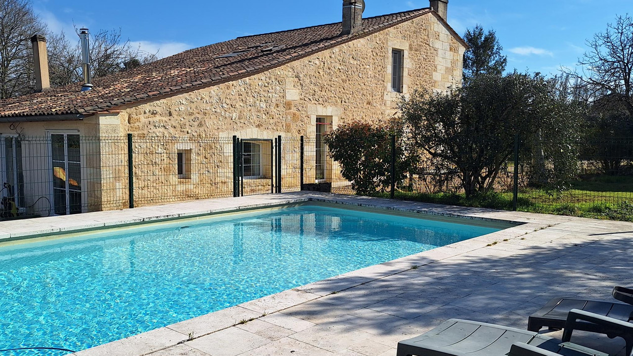 A44536BTU33 - Charming stone estate set in the countryside between Libourne and Saint-André-de-Cubzac, offering a beautifully restored main house with six bedrooms, elegant living spaces, and modern heating. The landscaped grounds of over 3,700 m² include a swimming pool and two independent guesthouses, ideal for hosting, professional use, or rental income. A rare opportunity combining lifestyle appeal, privacy, and investment potential in a sought-after location.