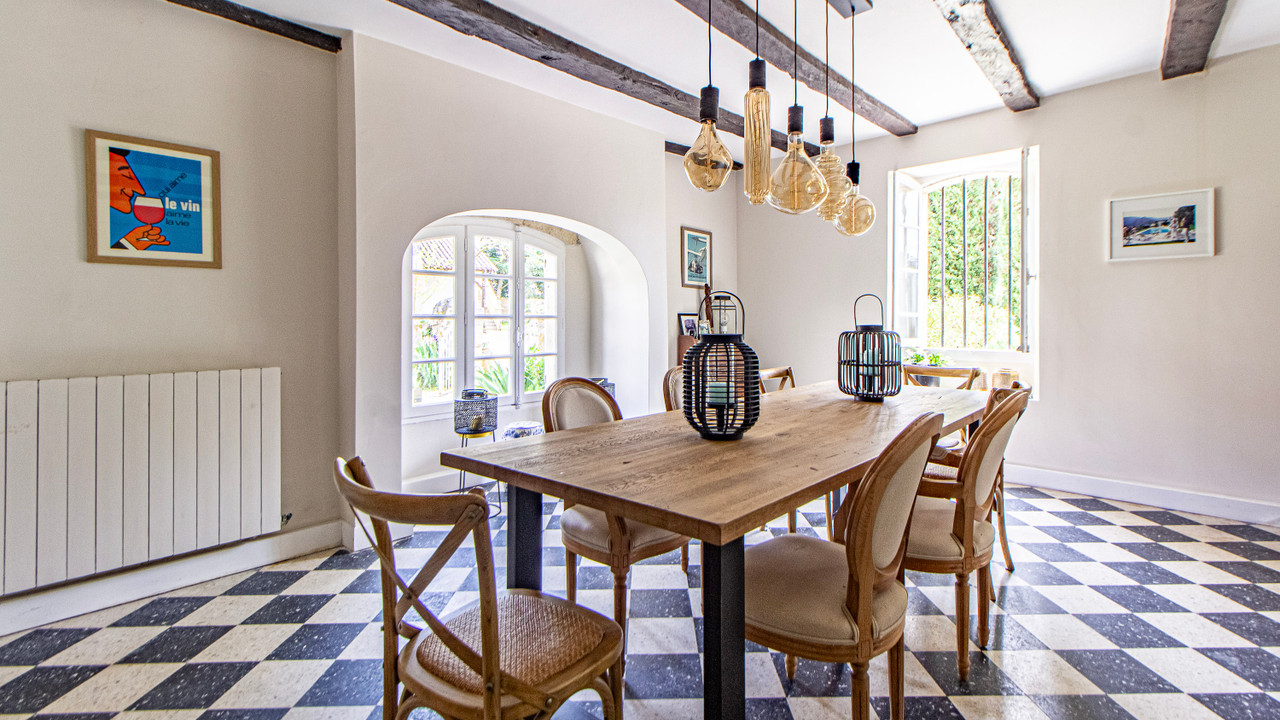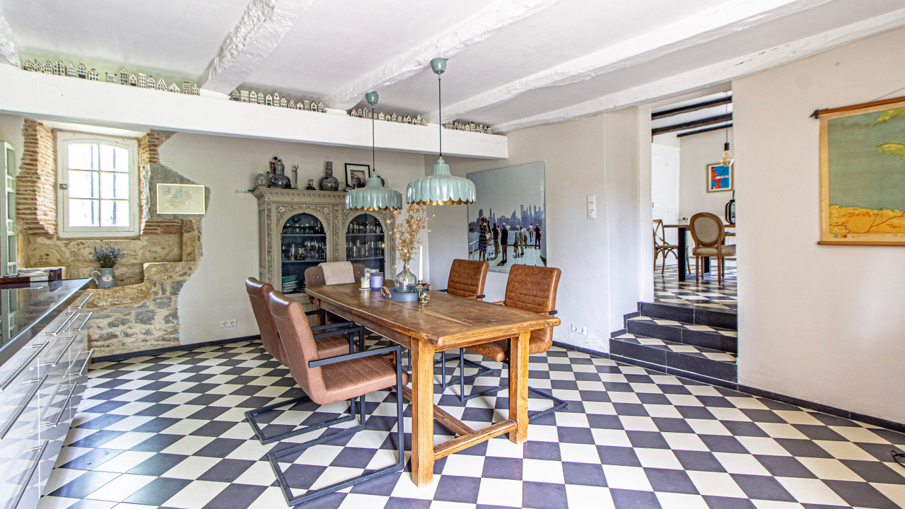 With two swimming pools, a tennis court, multiple terraces, and a separate guesthouse, the property is perfectly equipped for stylish entertaining and peaceful escapes. Original features such as a stone staircase, exposed beams, and checkerboard floors add irresistible character.