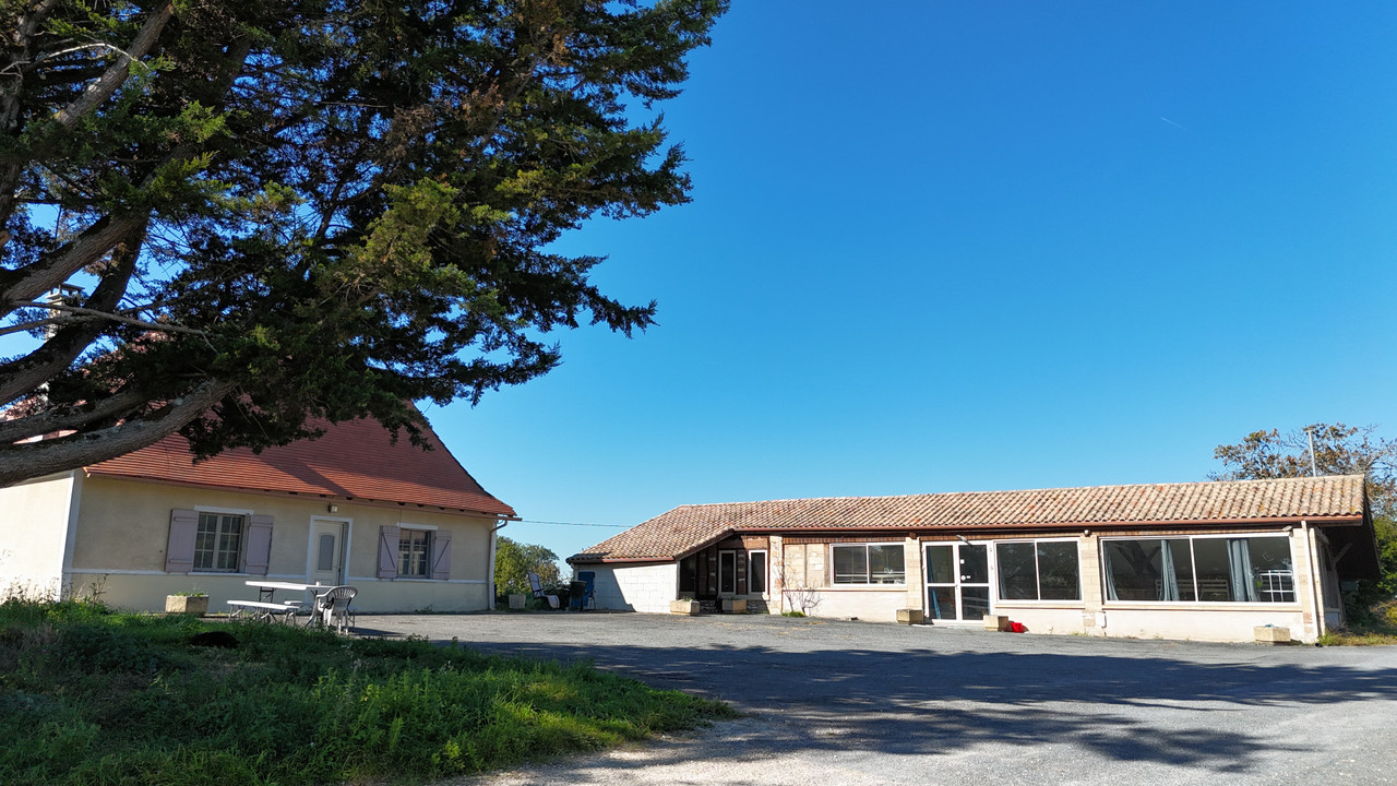 Professional facilities include 2 covered arenas (70×20 and 42×20), a lunging ring, 25 equipped boxes, tack rooms, horse showers, fenced paddocks and pastures. Accommodation features a 95 m² Périgord-style house (3 bedrooms, wood-burning stove, new roof in 2025), a 35 m² studio, a 95 m² clubhouse, barn, workshop, and storage building.