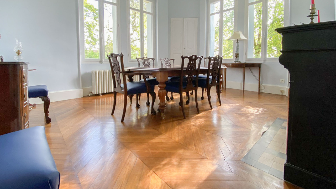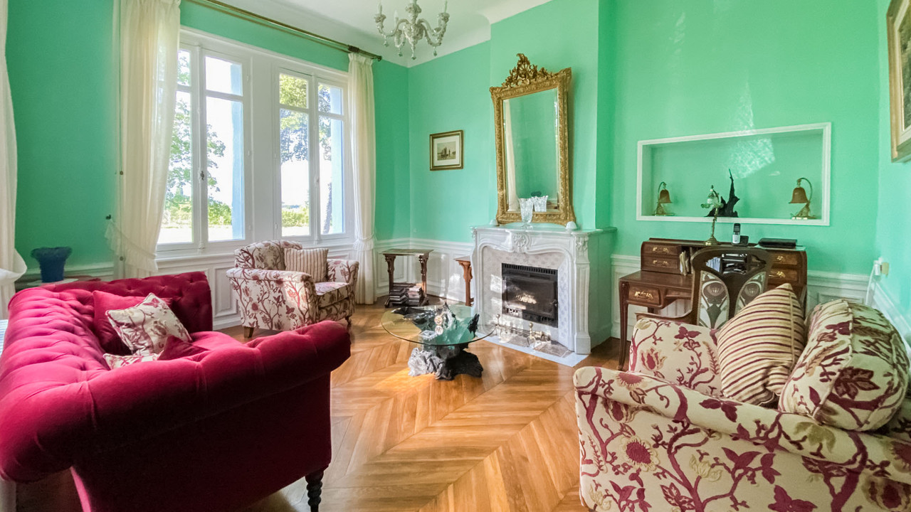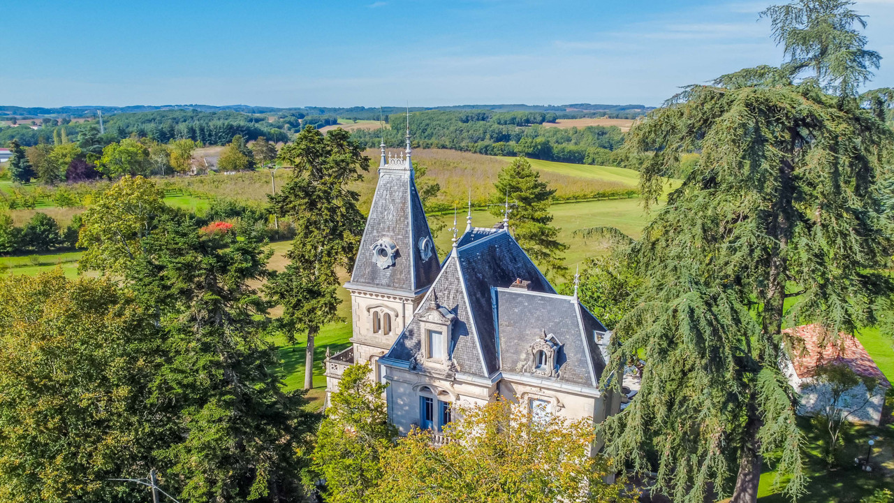 A32753DBC47 - Stunning Chateau built 1901 circa, original ornate stained glass windows and doors. Ornate stone work façade. and slate roof in good condition. Enter either through the driveway or the pedestrian original gate takes you to the ornate Chateau abundant in detail and beauty. Ornate ceilings in the entrance hallway and in the drawing room you will find vaulted ceilings and original marble fireplaces. All the original wooden floors are in excellent condition. Functioning original wrought iron radiators throughout. You will find a superb kitchen with granite worktops and stylish piano oven and wooden painted cabinets upon a tiled floor tall wall radiator and door leading out to the garden and park beyond. The immaculate 50 metres stone studio is well lit has double glazed casement windows and is heated is in immaculate equipped with a sink and W.C Laroque Timbaut train SNCF 0.29 miles Information about risks to which this property is exposed is available on the Géorisques website : https://www.georisques.gouv.fr