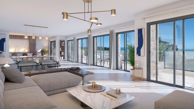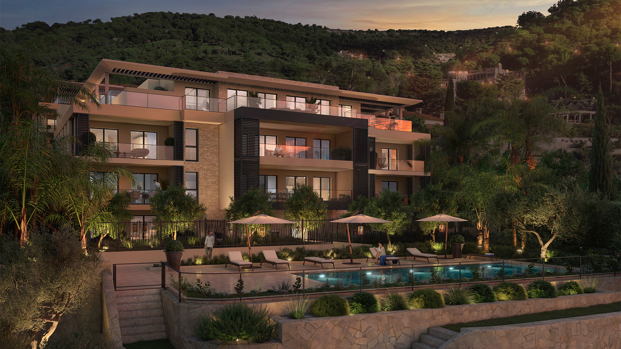 A38900OVI06 - Eze - New build. On the heights between Nice and Monaco, in an enchanting natural site, we are offering an exceptional development with a swimming pool. Mostly south-facing, the 22 apartments, from 2 to 5 rooms, have spectacular sea views. Spread over 2 buildings, they all have an outdoor space, private garden or terrace. A terraced landscaped garden follows the steep relief of the landscape.