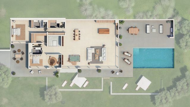Its contemporary architecture reveals bright and spacious volumes arranged over two levels, including a vast living area opening onto terraces and poolside decks, creating perfect continuity between the interior and exterior.