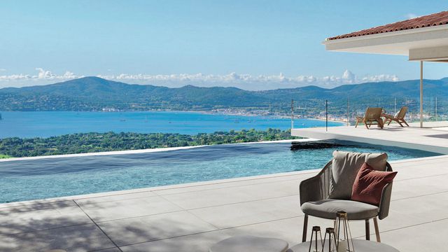 Within one of Beauvallon's most sought-after private and secure estates, a stunning new villa offering panoramic views over the Gulf of Saint-Tropez and the surrounding hills.