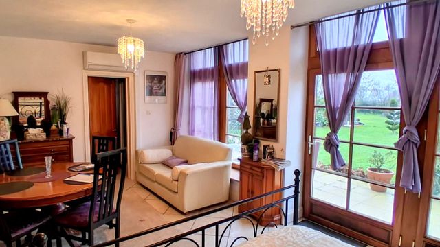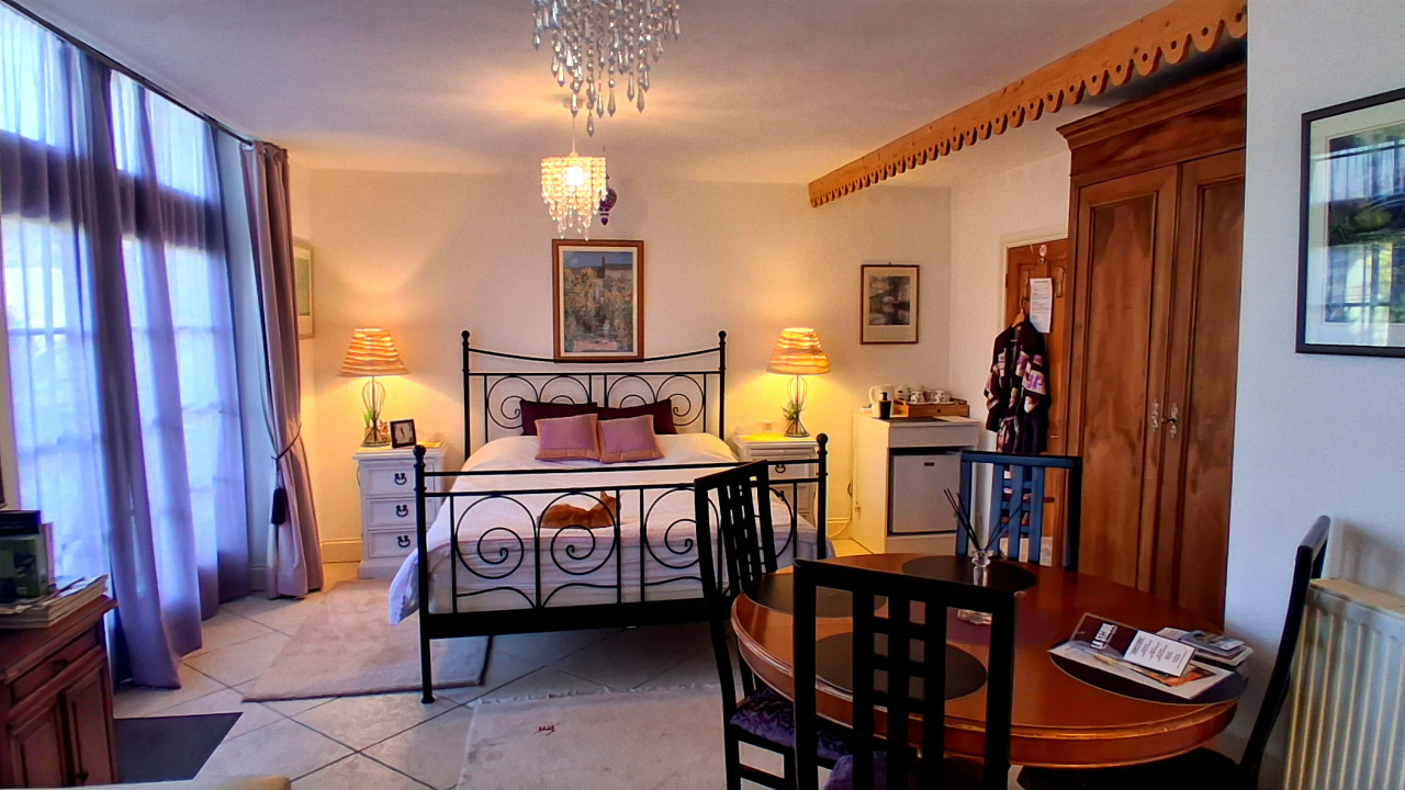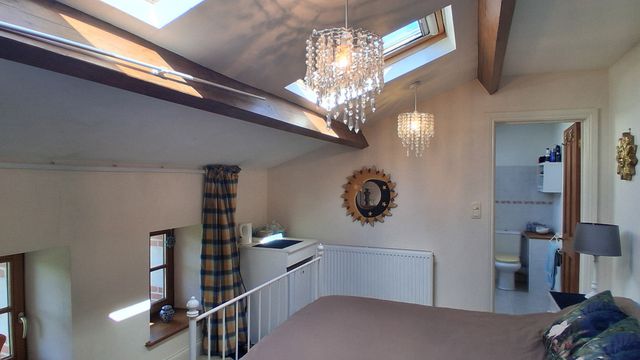 The main house offers four double bedrooms, while a self-contained annexe apartment provides excellent flexibility. The annexe includes a sitting room, fitted kitchen and shower room, with a spiral staircase leading to a large bedroom above, making it ideal for guests or independent living. The property enjoys magnificent views of the Donjon castle to the front, while to the rear there are far-reaching views across the Vendéen countryside, offering a rare combination of historic village centre living and open rural outlooks.
