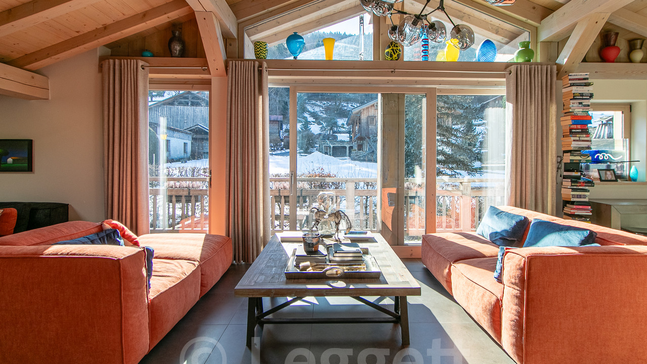 A42508JST74 - Arranged over 3 levels, this beautiful chalet features bright open-plan living areas, three bath/shower rooms, and generous ancillary spaces including a double-length garage and wellness facilities.