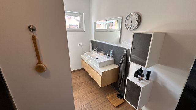 € 625.000 ID: 175617Deze ruime eengezinswoning met een woonoppervlakte van circa 128 m² en 6 kamers is gelegen in de wijk Niedermörmter in Kalkar. De woning is voorzien van hoogwaardige apparatuur en beschikt over een gastentoilet en twee badkamers. Bijzonder is de garage van circa 7 x 6 meter met een brede elektrische sectionaaldeur.
