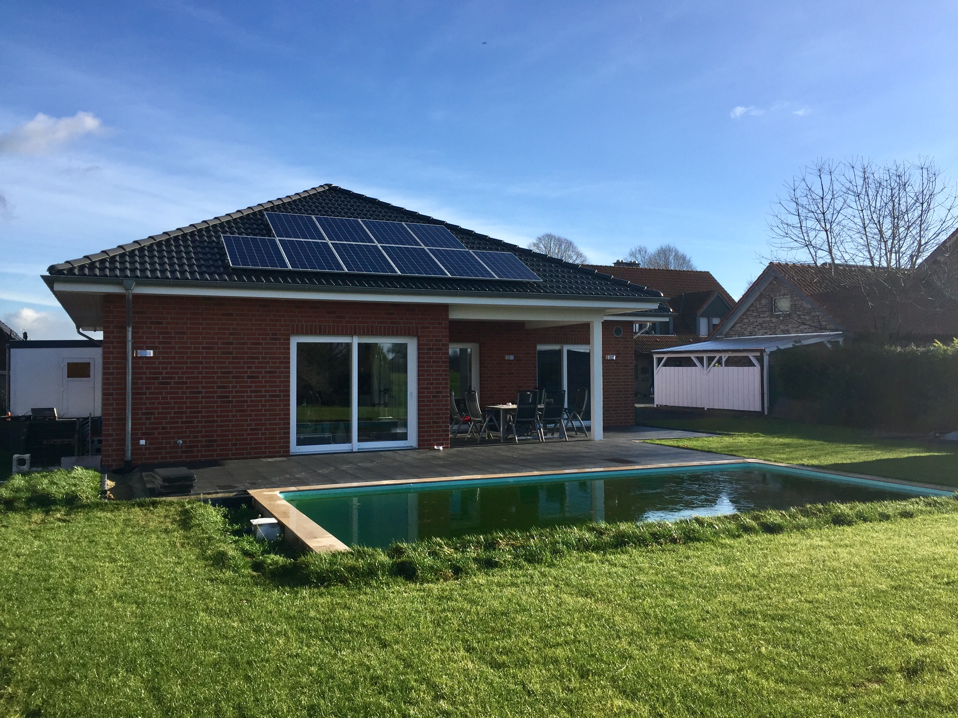 De woning is voorzien van een fotovoltaïsch systeem van 7 kW/p, waardoor de woning tijdelijk zelfvoorzienend is dankzij de ingebouwde energieopslag.