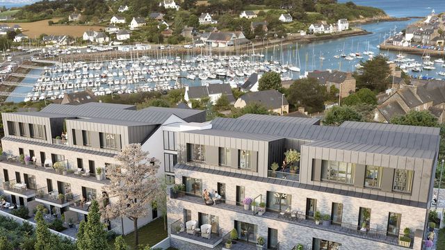 A40009HL22 - In the Côtes d'Armor region of Brittany, in PLÉNEUF-VAL-ANDRÉ, a historic family seaside resort, this magnificent residence is part of a 3-storey development overlooking the port of Dahouët. 27 flats from T2 to T5 with terraces and balconies and/or small private gardens. Walking distance to local shops and the Saturday market on the port. Sandy beaches, coastal path, cycling, fishing, 18-hole golf course, spa, casino. Close to Rennes and ferries from Saint-Malo to Jersey, Plymouth and Portsmouth.