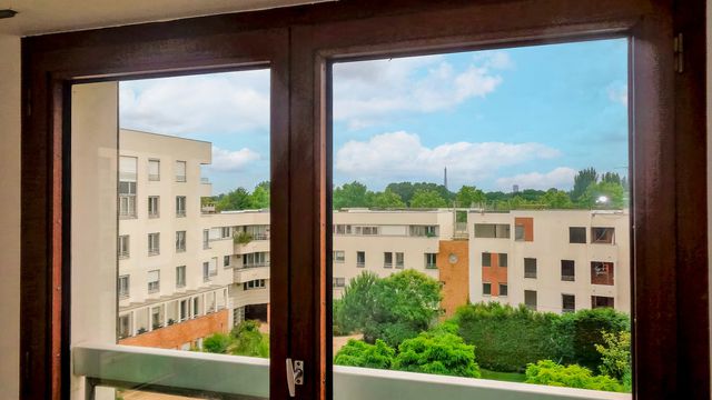 A27861DPE92 - PUTEAUX 92 - Georges Pompidou - 3 bedrooms (4 rooms) - 87,36m2 - EPC label Class D - See floor plan and visuals - At the heart of a magnificent landscaped park with a countryside feel, this beautiful, quiet and light-filled with a triple exposure (E/S/O) family apartment on the 4th floor / §th of a pleasant and very wel maintained residence dating from 1988, with lift. Recently renovated and benefiting from sunshine all day long, it includes a living room with dining and sitting areas, a beautiful fully-equipped contemporary kitchen with glass walls, a master suite with shower room, 2 further bedrooms, a 2nd shower room and a WC. A cellar and 2 parking spaces complete this property, which benefits from an unobstructed view of the top floor of the Eiffel Tower and offers a rare haven of peace. Just 2 minutes from all amenities (shops, transport, schools, nurseries, etc.) in a residential area close to the town centre, 2 minutes from the conservatoire, the Seine and the Bois de Boulogne. Information about risks to which this property is exposed is available on the Géorisques website : https://www.georisques.gouv.fr