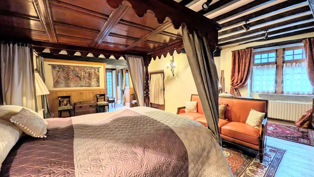 Listed for its historical significance the residence from the late 15th Century preserves its enthralling medieval features while introducing a graceful, contemporary elegance fully aligned with the character of the building. It is possible that there is some link to a previous Templar building. Surrounded by a series of “exterior rooms”—multiple dining terraces, a formal rose garden, and sculpted parklands—the property enjoys uninterrupted panoramas of the illuminated 12th-century château-fort across the water.