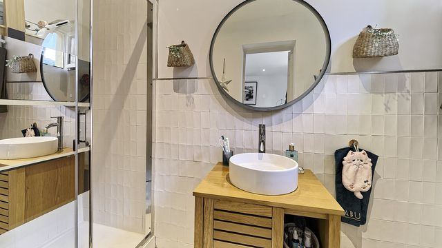 The highlight of this residence: its 100m² terrace designed as a true outdoor space. A semi-inground swimming pool, dining area under the olive tree, pétanque court, and unobstructed views of Saint-Paul Church create an ideal setting for long Mediterranean evenings.
