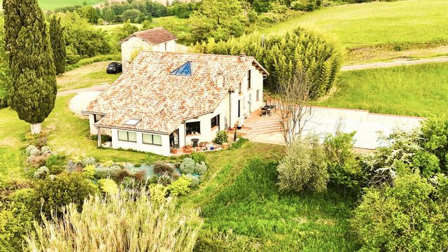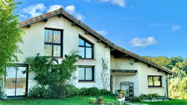 A33311SNM46 - This exceptional property is located just 10 minutes from the charming market town of Castelnau Montratier, in the heart of Quercy Blanc. Boasting a unique design, the main house offers 5 bedrooms, a spacious living/dining area, an office, a conservatory, and a billiards room, totaling 220 square meters of living space. The light-filled rooms feature high ceilings and ample storage. The property includes a covered swimming pool, allowing year-round swimming for up to 10 months. Set in beautifully landscaped gardens, the property spans 10 hectares of land. Additionally, there is a separate 2-bedroom cottage and several outbuildings, including a garage, barn, and workshop, making this an ideal home for both relaxation and business potential. A truly rare opportunity in a peaceful, rural setting.