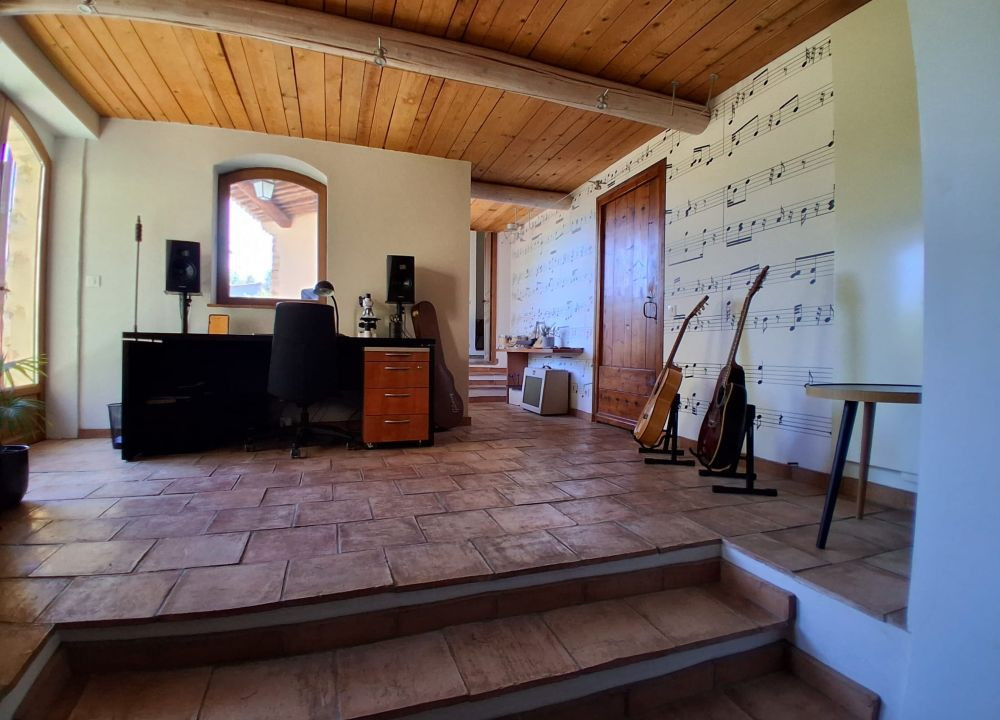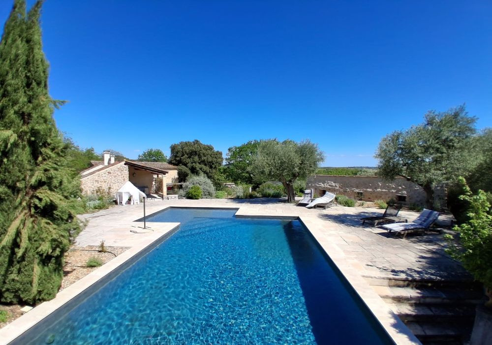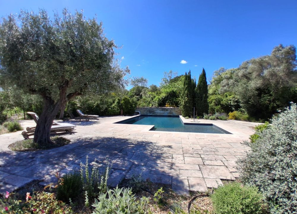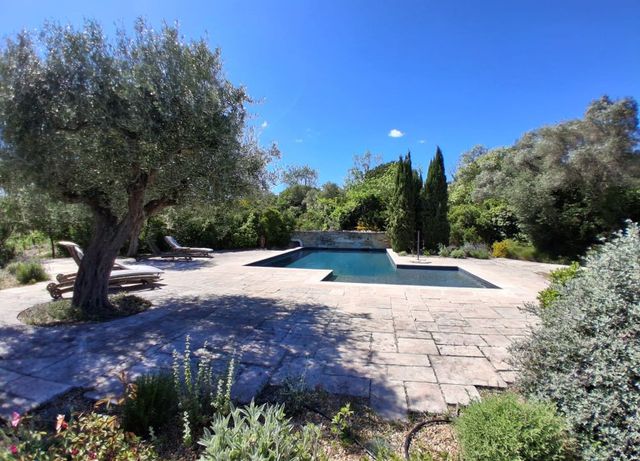 The landscaped garden, enhanced by intimate terraces, enjoys open views over the vineyards. The swimming pool and summer kitchen extend this rare haven of peace.