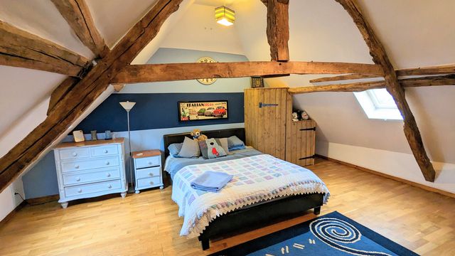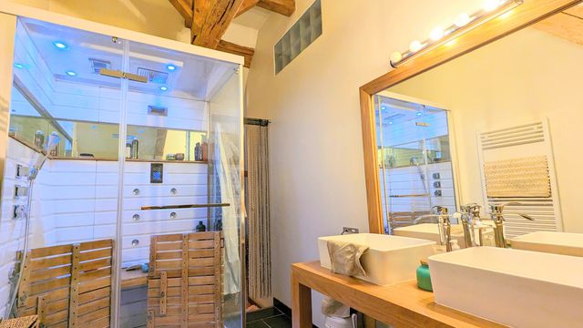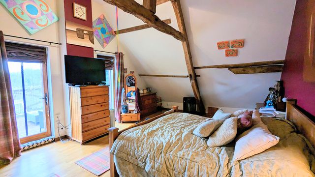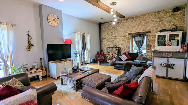 A19057AMC87 - Large open living spaces which have kept the character of the former barn. There are 2 one bedroom gites and an in-ground pool and pool house with bar.