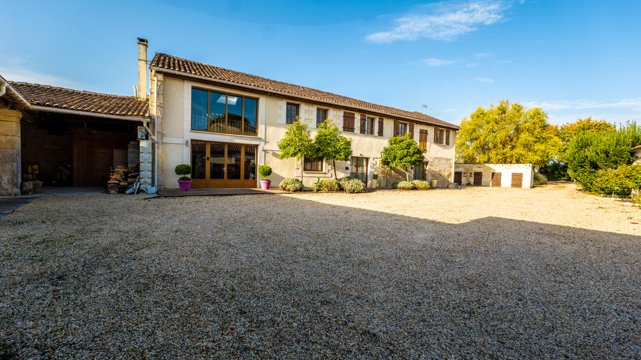 A18128ANB16 - This beautifully converted barn in the heart of the Charente region, offers fabulous open plan living and has been finished to an exceptional standard. On the ground floor there is a fabulous open plan kitchen with vaulted ceiling and views onto the garden, living room and 2/3 bedrooms and games room which can be separated from the main house and are currently let as holiday accommodation with fantastic 9.9/ 10 rating on Booking.com. On the first floor there is an impressive mezzanine landing and a further 3 double bedrooms, one with private outside terrace.