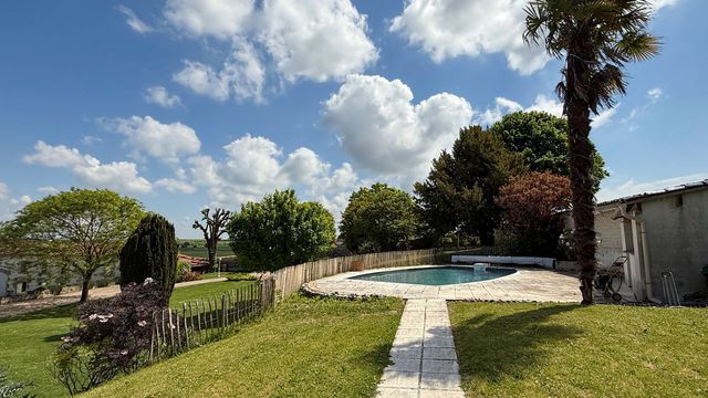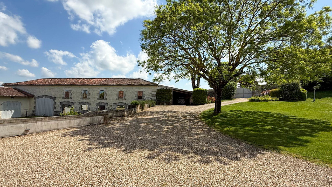 A41639JMR16 - Set behind grand entrance gates and surrounded by the vines of the "Grande Champagne" Cognac region, this beautiful country estate, just a 10 minute drive into the centre of town, has it all :