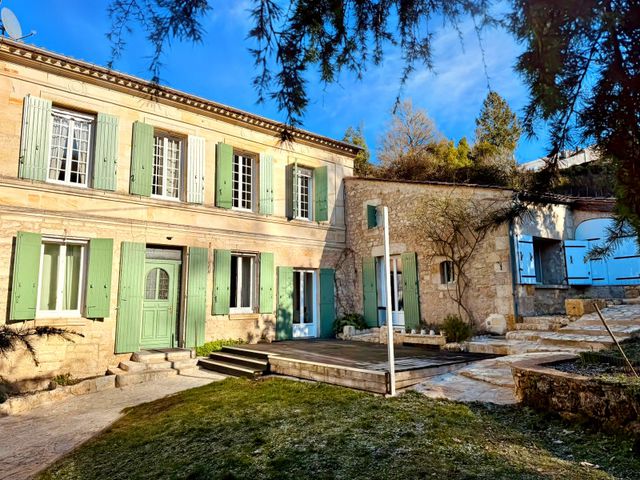 A40519MGD33 - Exceptional stone property comprising 4 bed main house plus separate gite/guest house, outbuildings/hangar & almost 3 acres of land. In the main house, entrance hall, large lounge with fieplace, beautiful dining kitchen, 4 bedrooms, 2 bathrooms, office/mezzanine, courtyard. Separate 1 bed (possibly 2) gîte with good rental potential. Large outbuildings for further development. Stunning views. Near the village of La Rivière, close to Fronsac & Libourne.