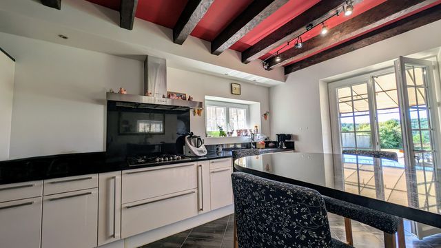 is this exceptional property. This old farmhouse has been renovated to a very high standard, with absolute respect for traditional construction and local heritage. Its unique location in the Parc Naturel Régional du Haut Languedoc, with the famous Sidobre granite massif overlooking the surrounding mountains, offers breathtaking panoramic views!