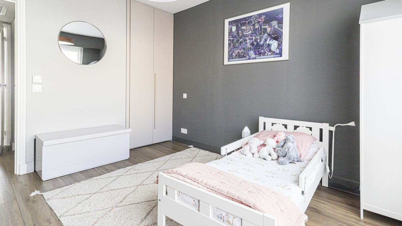 Top floor (3/3). Renovated 4-room apartment, 103m², 3 bedrooms, 2 bathrooms, 10m² balconies. Cellar.