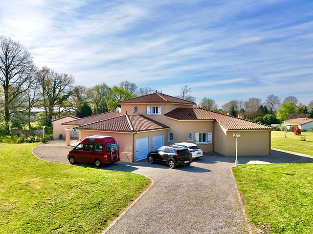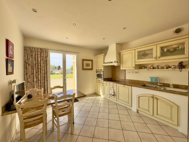 Deze goed onderhouden woning uit 2006, gelegen nabij Saint-Mathieu, biedt 5 slaapkamers, 3 badkamers, een ruime woonkamer met vloerverwarming, een aparte keuken, een kantoor en een mezzanine.