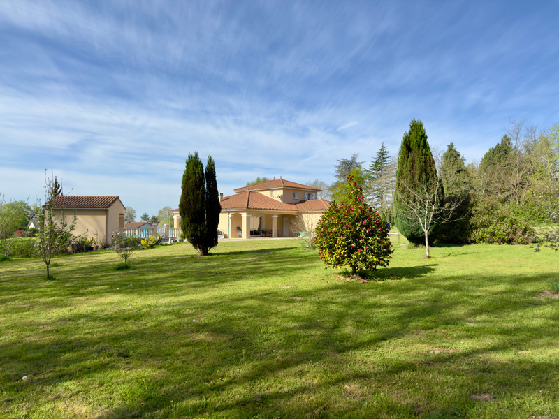 De 1 hectare grote, op het zuiden georiënteerde tuin is volledig omheind en beschikt over een verwarmd zwembad met geïntegreerde jacuzzi, een aparte jacuzzi, een poolhouse, een atelier en een schuur – allemaal voorzien van water en elektriciteit.