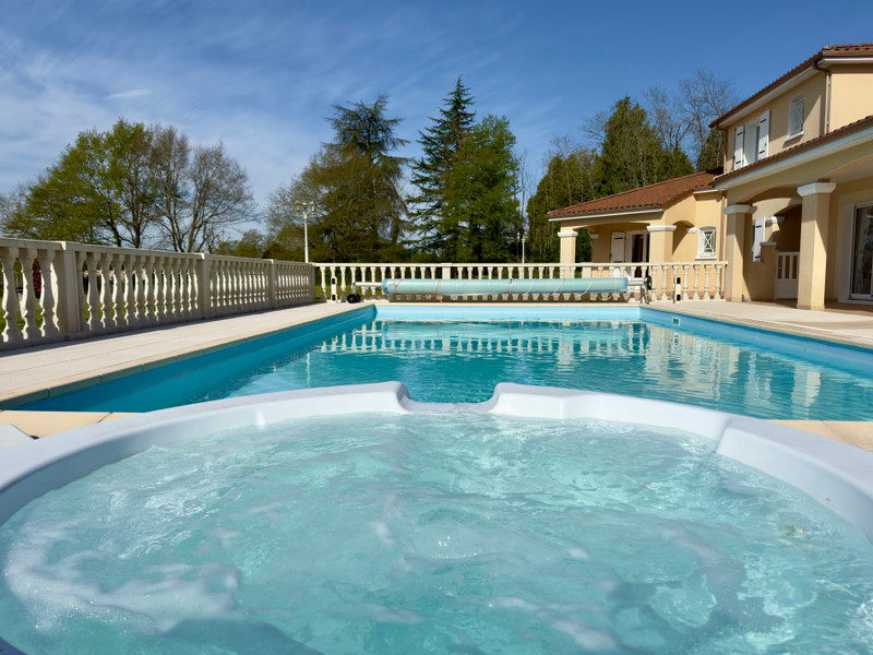 Het verwarmde zwembad (geïnstalleerd in 2010) is voorzien van een zoutwaterpomp, een alarmsysteem en een jacuzzi in het zwembad zelf. Achter het huis bevindt zich een aparte jacuzzi. Het zwembad is omgeven door een betonnen vloer met een liner, en in het poolhouse bevinden zich alle technische installaties, waaronder een toilet en een douche.